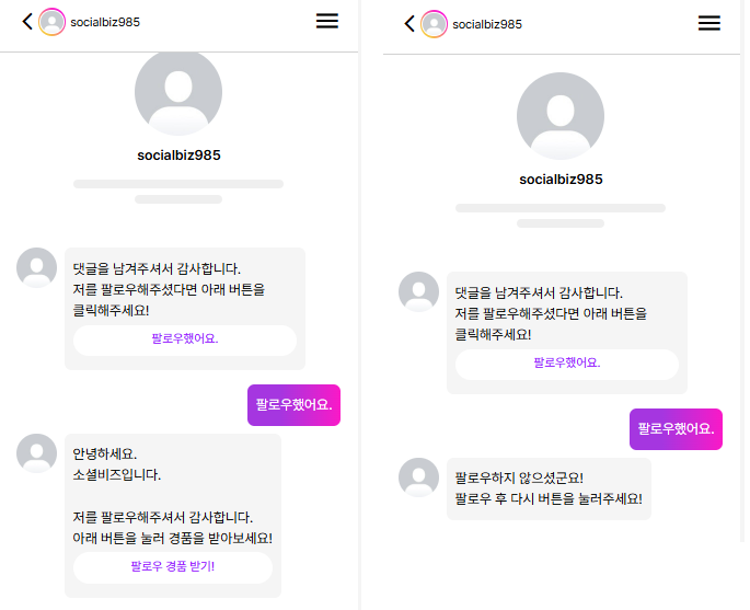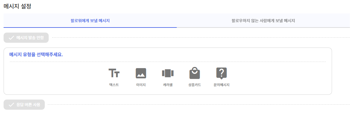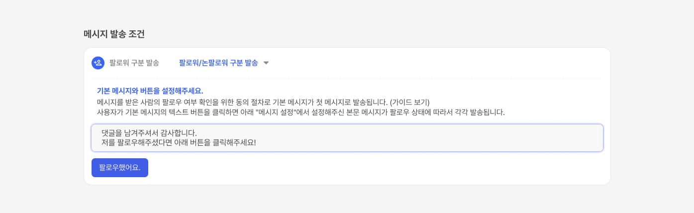 팔로워에게 보낼 메시지와 팔로우하지 않는 사람에게 보낼 메시지를 각각 설정해주세요.