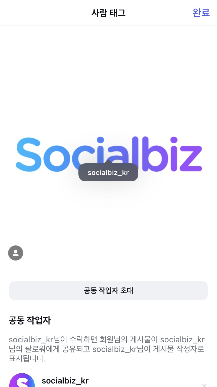 (공동작업자는 게시물의 수정 권한이 없음을 의미하며 게시물 업로더가 소셜비즈를 사용하고 있어야 함.)