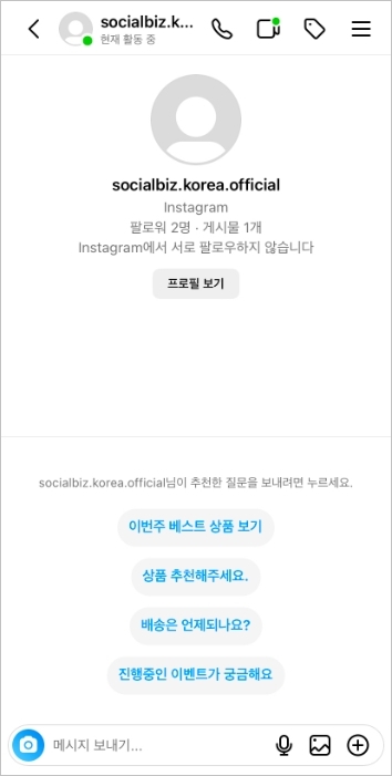 자주 묻는 질문이란, 고객이 비즈니스와 처음 대화 시작 시 선택할 수 있는 대화 주제 목록이에요. 고객이 자주 하는 질문이나, 홍보가 필요한 내용을 대화 첫 시작의 주제로 만들어보세요.
