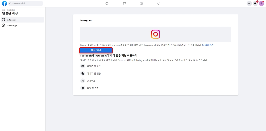 PCからフェイスブックにアクセスした後、ページとインスタグラムのアカウントを接続してください。